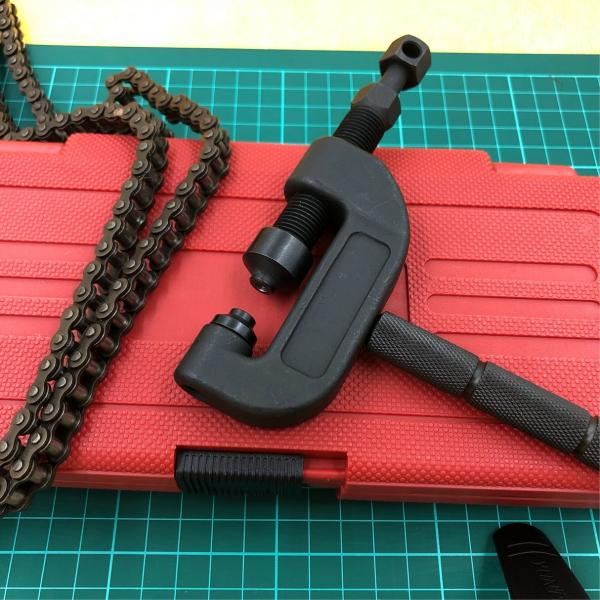 工具はデイトナのチェーン工具に、カシメピンと、ピンガイド2点を加工追加しています。